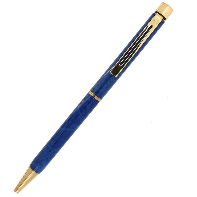 Sheaffer Targa Ballpoint Pen, Translucent Blue Moire & Gold, USA Made, No Box