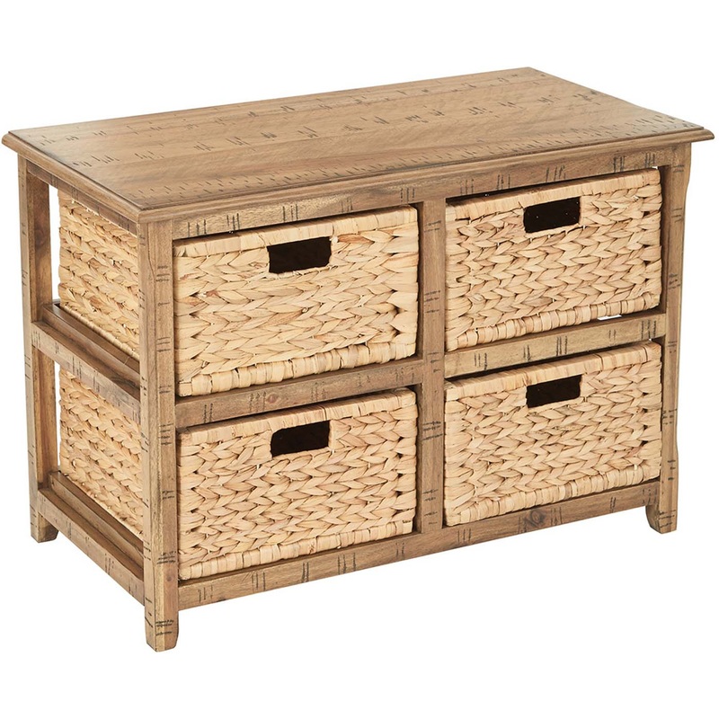 Product FeaturesSolid wood & veneerDistressed Toffee finishTwo tier storage towerIncludes four natural basketsFully assembledIntended for residential use onlyGreenguard: NoColor: Distressed ToffeeAssembly: Fully AssembledShips in: 2-3 business daysDelivers