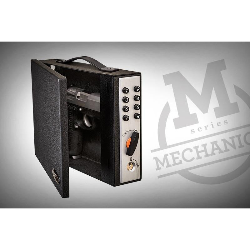 ShotLock Handgun 200M Solo-Vault (Mechanical)Shotlock Handgun 200M Solo-Vault is made of military-grade 14-gauge steel. Features include a flanged no pry lid, double internal locking hooks, carry handle, protective felt inner liner, with key override and n