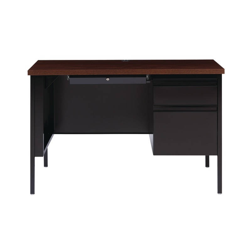 Solid and stable desk with square edge laminated top that is scratch- and stain-resistant. Built with a durable, powder-coated steel frame with 1" square tubular steel legs. Standard features include full extension ball-bearing drawer slides for smooth dra