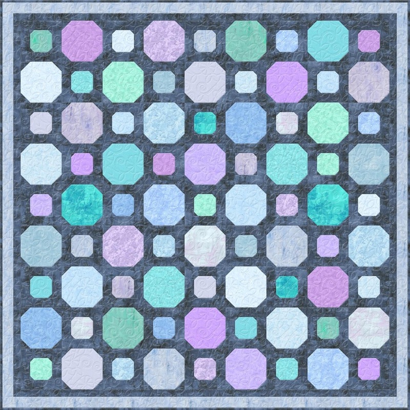 Snowballs Quilt Kit: FeaturingOpal Sky. This pre-cut friendly pattern is perfect for featuring fabrics and colors without cutting them into tiny little pieces. Quilt kit features the Opal Sky Collection of printed basics with a denim blue color print as the background that helps to offset these soft and soothing colors.