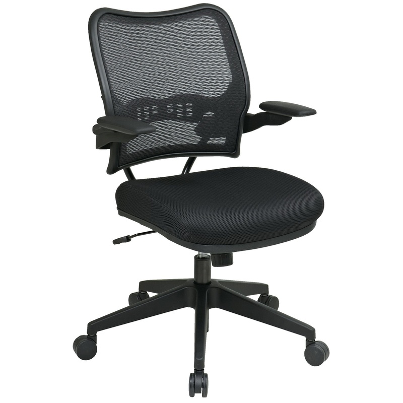 This Office Star chair features a backrest made from Air Grid mesh that promotes optimal airflow and breathability for a cooler seat in any condition. Additional comfort is provided by thick padding in the cushion, mesh fabric upholstery, and built-in lumb