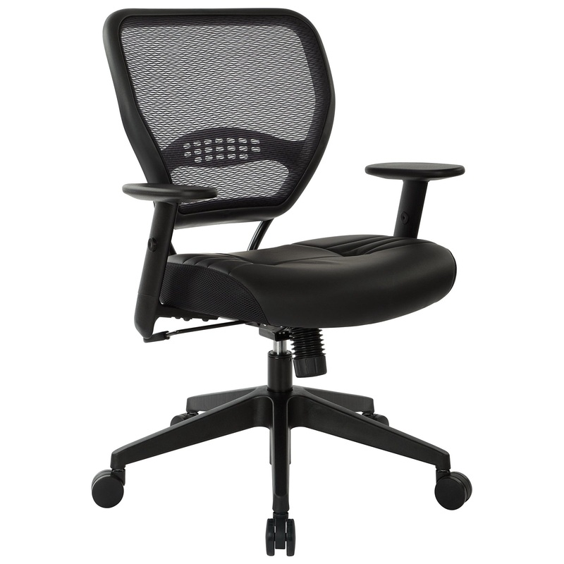Introducing the mesh-backed bonded leather desk chair from Office Star, a thoughtfully designed seating solution that combines style and functionality. This chair boasts an innovative Air Grid screen on the backrest, which ensures optimal breathability, ke