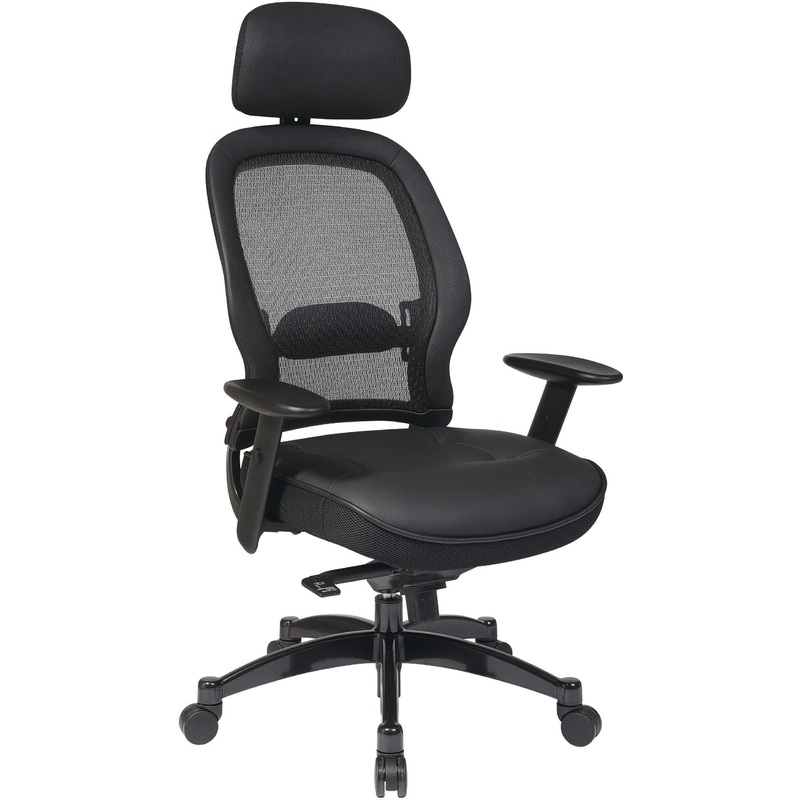 Fabric: Breathable Mesh Back and Black Leather Seat with Black Leather Trim