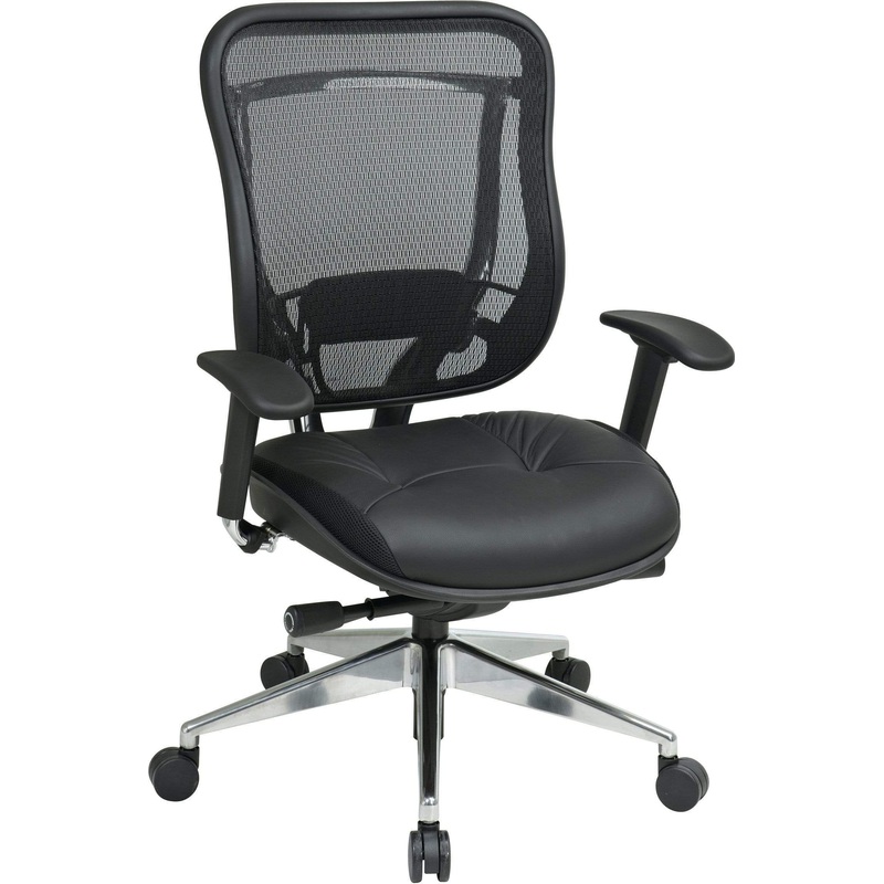 Fabric: Black Breathable Mesh Back and Black Top Grain Leather Seat