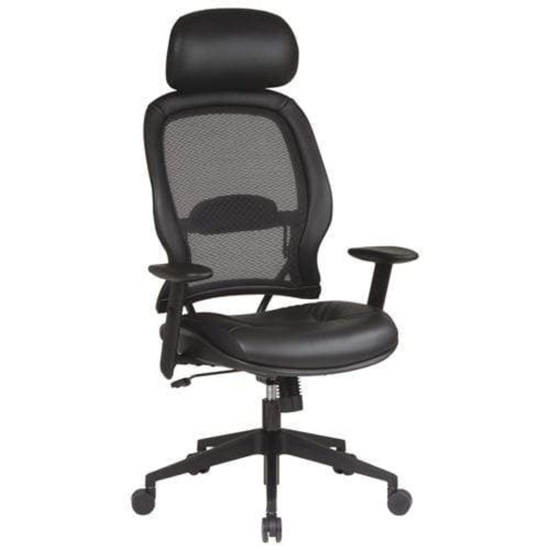 Features: Thickly padded, contoured, bonded leather seatMatrex screen mesh back embroidered in black bonded leatherPneumatic seat height adjustmentAdjustable lumbar support2-to-1 synchro tilt controlComfortable height adjustable angled arms with soft PU pa