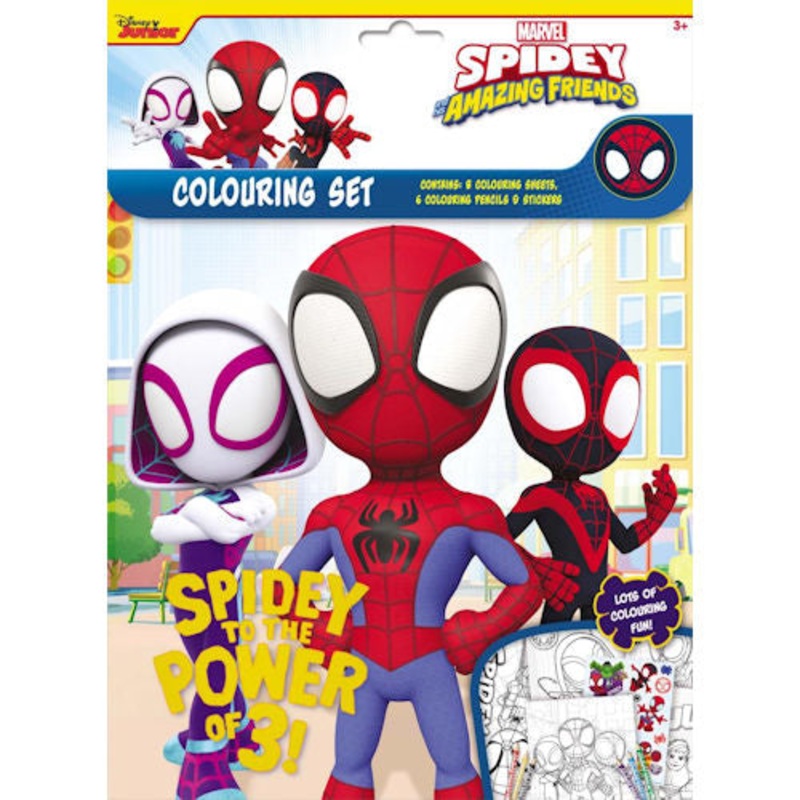 Title: Spidey & Friends Colouring Set Inclusions: This set includes 8 colouring sheets, 6 colouring pencils, and stickers, providing everything needed for creative fun. Usability: Ideal for long journeys, offering entertainment and creative opportunities f