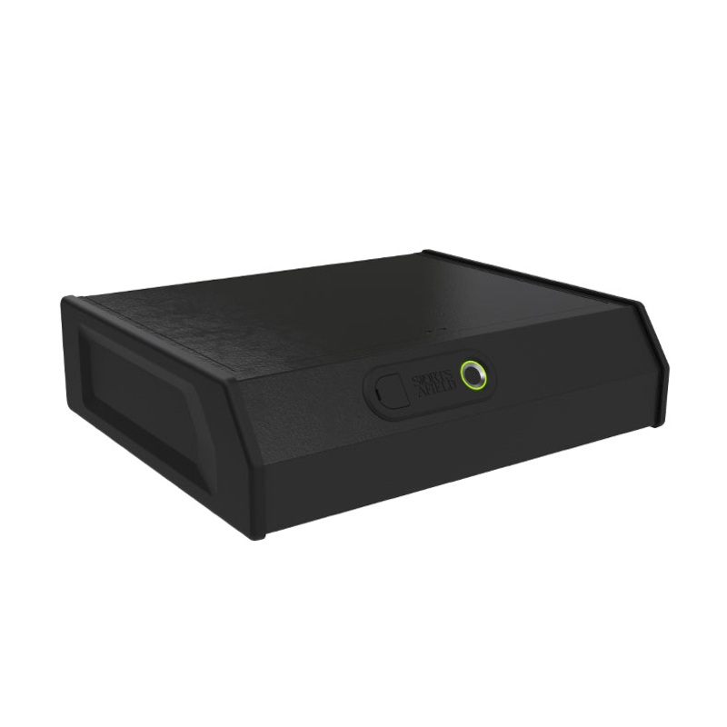 The Sports Afield SA-HD6-BIO Quick Access Vault is perfect for storing and protecting up to 1 handgun inside. The outside dimensions are 3.70″ high by 12.60″ wide by 10.60″ deep. The safe can be mounted on a nightstand or desk and has a spring-loaded top lid to quickly access your handgun.