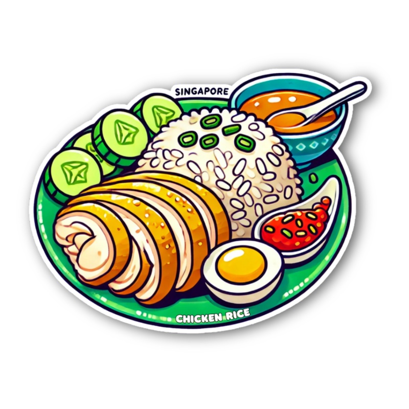 Sticker - chicken riceCelebrate the rich culinary heritage of Singapore with this UV waterproof Chicken Rice Sticker! Perfect for showcasing your love for iconic dishes, this sticker features an illustration of the beloved Chicken Rice, a signature dish fr