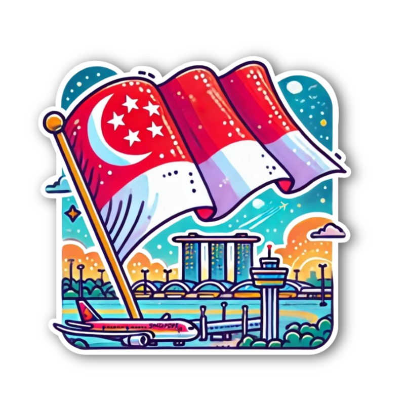 Sticker - flag, airportThisSingapore Flag & Airportsticker is perfect for anyone looking to celebrate the iconic landmarks of Singapore. Featuring a bold illustration of the Singapore flag waving proudly against the backdrop ofChangi Airport, this high-qua