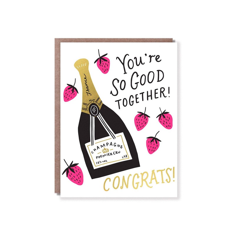 Celebrate a couple who are just meant to me together with the perfectly-paired Strawberries and Champagne card from Hello!Lucky.Hello!Lucky cards are printed on 100% recycled paper produced from a paper mill powered by green energy.