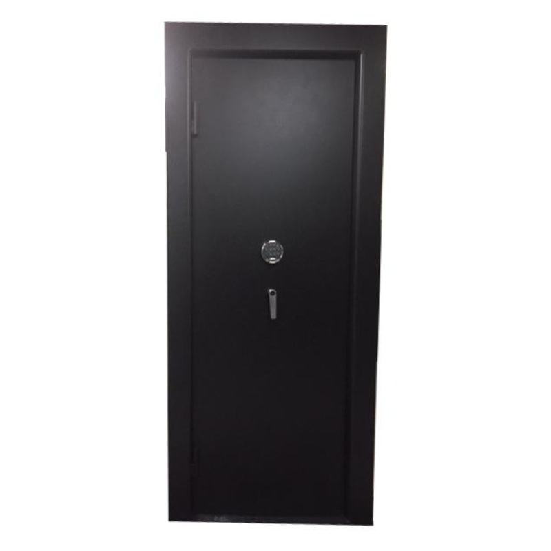 The Sun Welding SW8040 Vault Door is designed for an 80″ H x 40″ W opening. It features 1/4″ thick steel and a 30-minute fire rating. A 1-hour fire rating is available for an additional charge. There are also 14 locking bolts (6 on each side and 2 top bolts) to prevent pry attacks.