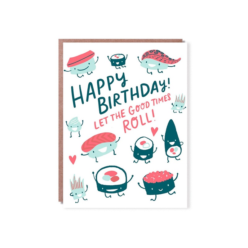 Make your birthday greetings sa-shimmy their way into the party courtesy of the Sushi Roll card from Hello!Lucky.
