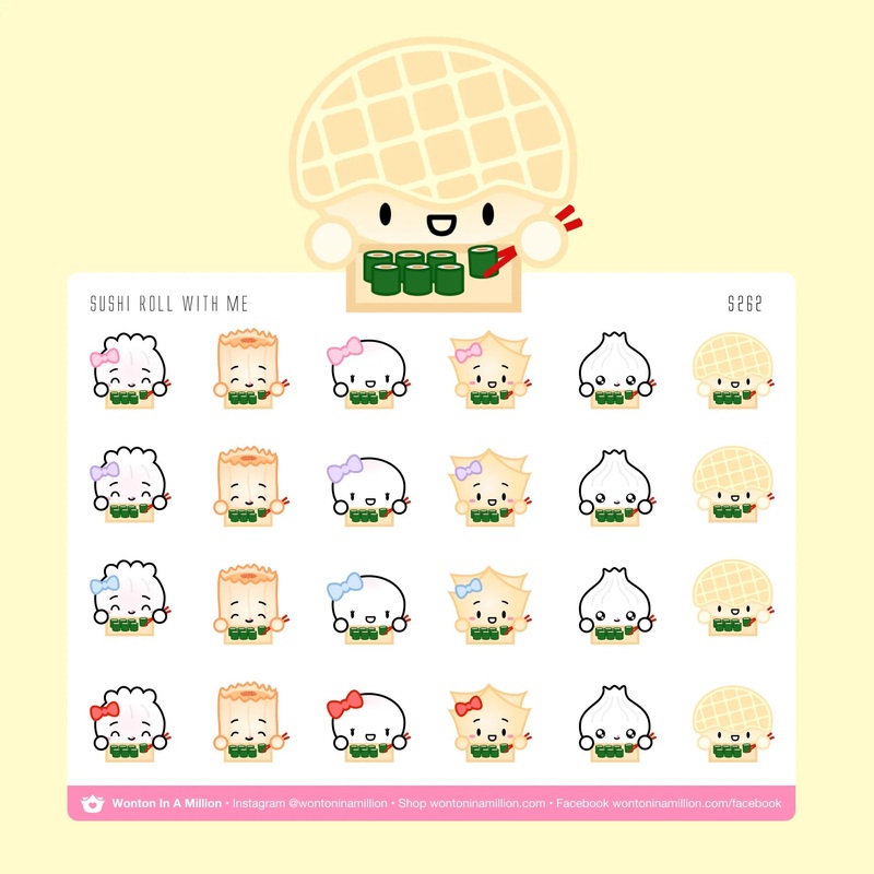 Decorate your planners, scrapbooks, bullet journals and more with this adorable sticker sheet featuring the Shrimp Dumpling family! It’s said that to judge the skill of a dimsum chef, you look at how they’ve made a shrimp dumpling: its skin should be translucent but not break when you pick it up, and the skin shouldn’t stick to the steamer or to the other shrimp dumplings in the basket. Shrimp dumplings are a MUST HAVE at dimsum (and in your sticker collection!)