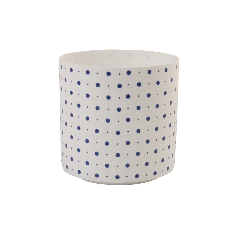 Fill your room warmly with this stylish tealight holder. Made of porcelain and with a delicatedot graphic design. To clean, wipe with a damp cloth. Like this? Try the stripes or check designs! // Material: Porcelain// Design colour: Blue// Diameter measure