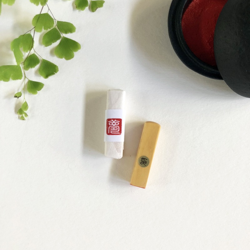 “The Lotus Atelier”as 100+ year old family-run stamp shop, established in 1910 in Fukuoka, Japan, now on the third generation of family. The most interesting part of Yura No In is the rare material of which the stamps are made. Yura No In are made of Hon-Tsuge( wood. In Japanese history, Hon-Tsuge is the most premium wood material available, reserved for the most formal stamps. Hon-Tsuge is composed a type of very rare tree that only grows in Kagoshima, Japan. The growth of the tree is very slow, usually taking about 40 years to become ready and strong enough for production. The fiber of the Hon-Tsuge tree is extrametly dense, which makes it ideal for long-lasting stamps.