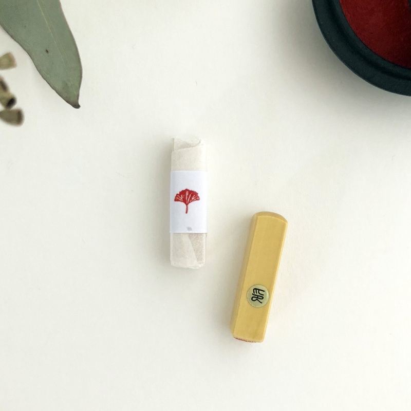 “The Lotus Atelier”as 100+ year old family-run stamp shop, established in 1910 in Fukuoka, Japan, now on the third generation of family. The most interesting part of Yura No In is the rare material of which the stamps are made. Yura No In are made of Hon-Tsuge( wood. In Japanese history, Hon-Tsuge is the most premium wood material available, reserved for the most formal stamps. Hon-Tsuge is composed a type of very rare tree that only grows in Kagoshima, Japan. The growth of the tree is very slow, usually taking about 40 years to become ready and strong enough for production. The fiber of the Hon-Tsuge tree is extrametly dense, which makes it ideal for long-lasting stamps.