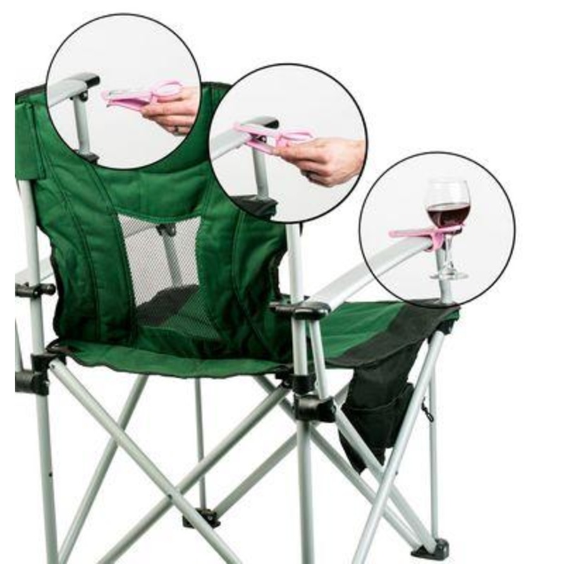 The Wine Hook is an outdoor chair stemmed glass holder that easily slides on the arm of most outdoor chairs (patio chairs, Adirondack chairs camp/bag chairs and others) and securely holds your stemmed wine glass.