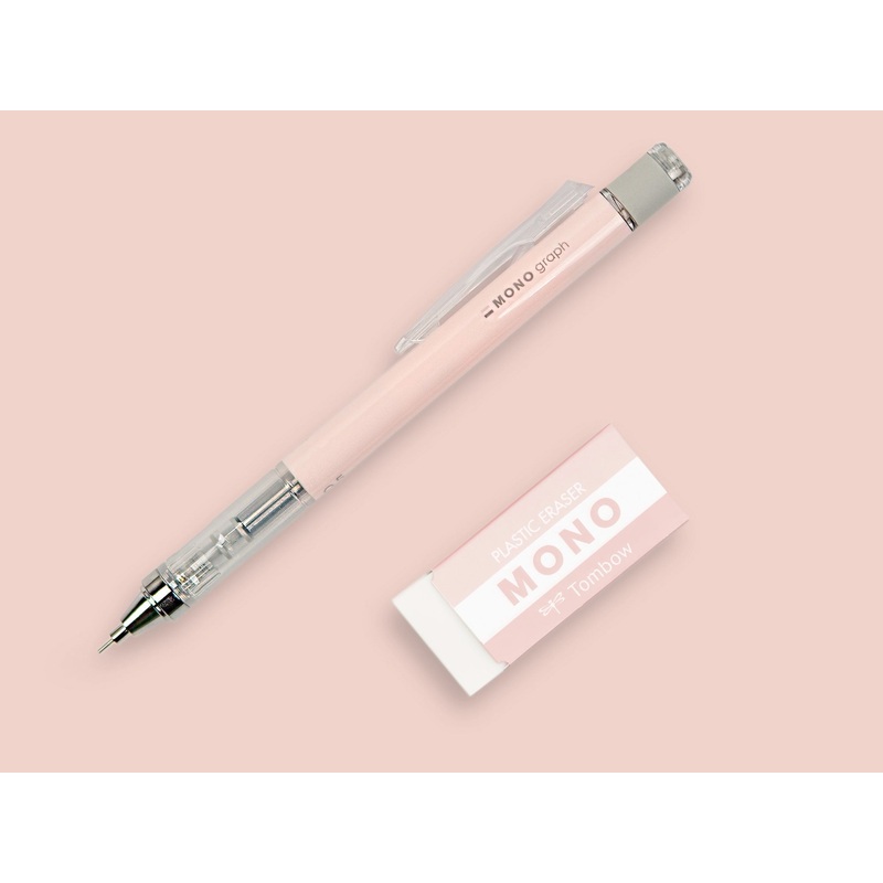 Limited Edition set with matching MONO Graph Mechanical Pencil and MONO Eraser. The MONO Graph Mechanical Pencil features an innovative shake-mechanism that allows the user to extend the lead by simply shaking the pencil. The pencils clip is equipped with a shake lock that prevents accidental lead extension. 4mm long fixed guide pipe prevents the lead from breaking and enables users to draw and write firmly, stably, and comfortably. Features one of Japans most popular erasers, the MONO Eraser, fully retractable with twist action. Refillable lead and eraser. 0.5mm HB lead.