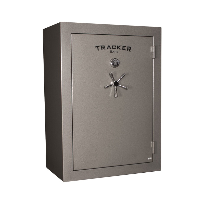 Tracker Safe TS64 Gun & Rifle SafeYou will enjoy the spaciousness and security of your new Tracker Safe Model TS64 Gun Safe. Depending on the type and size of guns you have, it has a 64-gun capacity. The interior is gray carpeted, with adjustable shelving