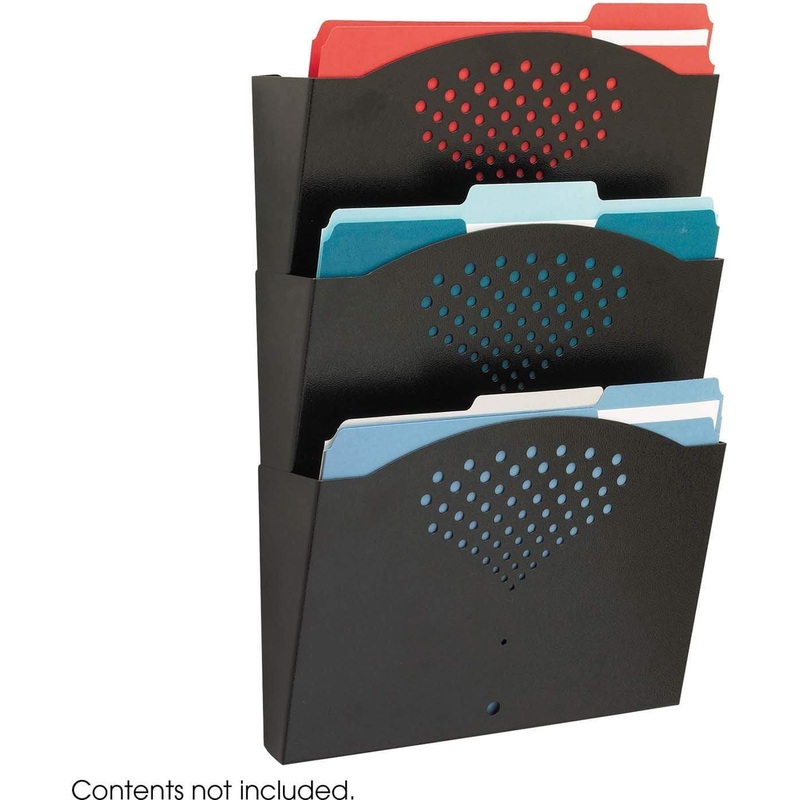 Triple Tray Steel Wall Organizer Rack Letter-Size Three Pocket Black [3172BL]