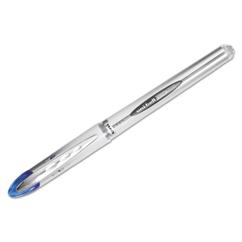 The patented airplane-safe technology prevents leakage on flights. uni Super Ink? provides three-way protection against water, fading and fraud. Fade-proof, acid-free waterproof ink provides permanence for important documents. Transparent barrel window shows when you’re running low on ink. Point Size: 0.8 mm; Point Type: Bold; Ink Color(s): Blue; Pen Type: Roller Ball.