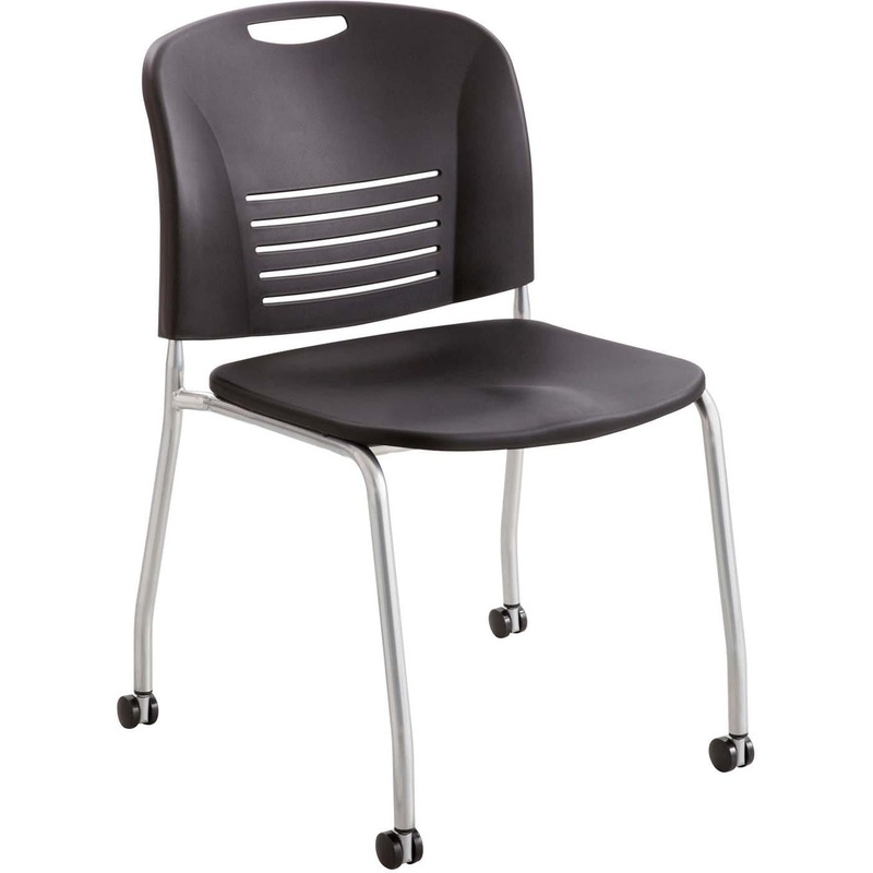 Features:Plastic chairs (stack chairs)Rated up to 350 lbs.Straight leg frame with castersGuest chair stacks up to 12 high on the floor and up to 18 high on cartPacked two chairs per cartonSpecifications: Material: Steel (legs);Polypropylene;Plastic (seat);
