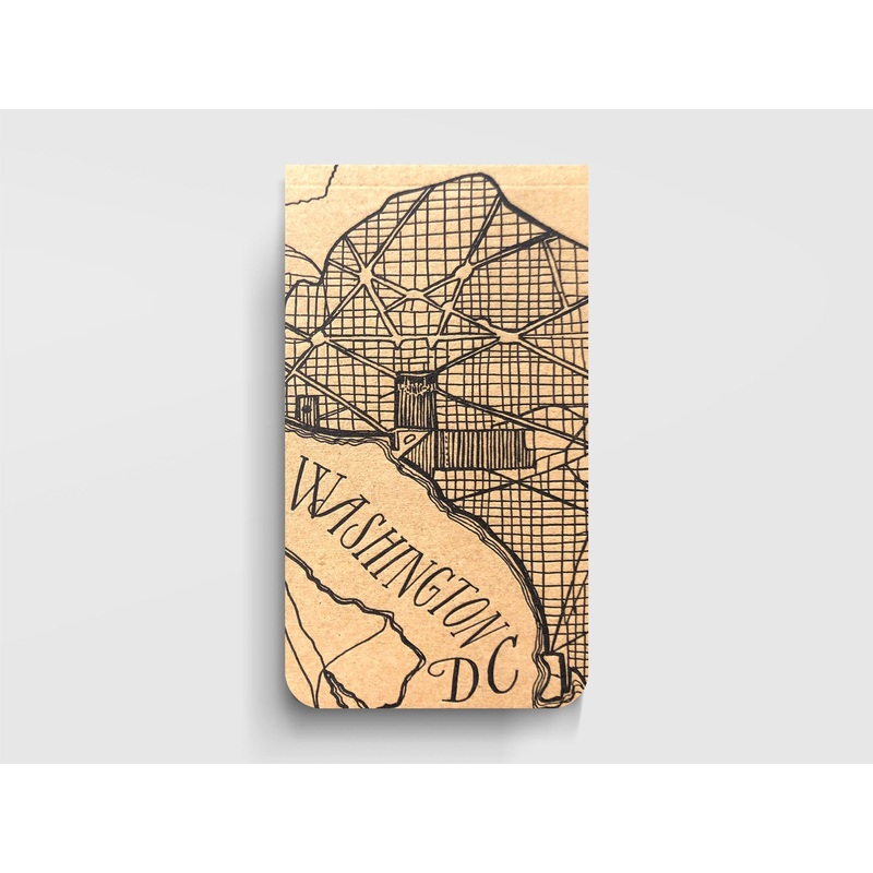 Jotter pad to keep in a pocket for note-taking wherever you go. Featuring a hand-drawn map of Washinton, DC, this handcrafted pad is letterpress printed and assembled in Baton Rouge, Louisiana.