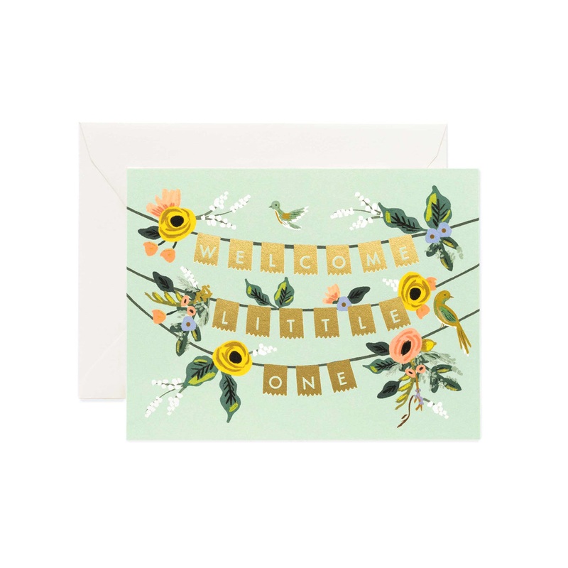 Celebrate the arrival of a new baby in classic storybook style courtesy of the charming Welcome Garland card from Rifle Paper Co. This illustrated card is blank inside and comes with its own high quality envelope. All Rifle Paper Co products are printed on high quality FSC-certified paper stocks.