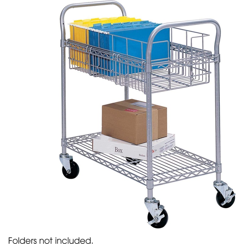 Durable and easy to navigate, the Safco Wire Mail Cart is as useful as it is mobile. Welded wire construction, dual handles, a top shelf for file folders and a bottom shelf to hold parcels make this mail cart the most convenient mailman you'll ever have.Fe