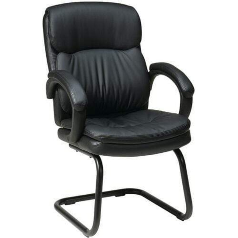 This sled base guest chair from Office Star Products features Eco Leather upholstery. Eco Leather is comprised of a faux leather finished surface area with recycled leather backing, making it more durable than traditional vinyl backed with cotton. This guest chair is part of an executive series that includes a high-back and a mid-back chair and an attractive and comfortable seating solution for any office, conference, or waiting room.