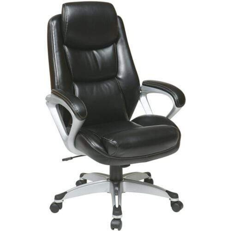 This office executive chair, from Office Star Products, features plush Eco Leather upholstery and a comfortable coil spring seat. Eco Leather is comprised of a faux leather finished surface area with recycled leather backing making it more durable than traditional vinyl’s backed with cotton.