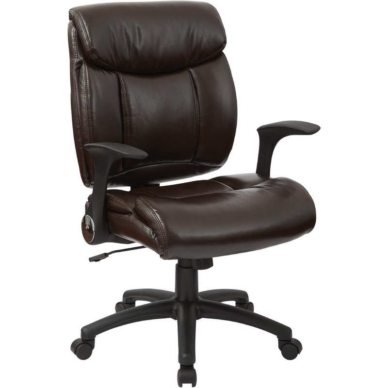 Features: Faux Leather Seat and Back with Built-in Lumbar SupportOne Touch Pneumatic Seat Height AdjustmentLocking Tilt Control with Adjustable Tilt TensionNylon Flip Up ArmsHeavy Duty Nylon Base with Dual Wheel Carpet CastersNet Weight: 35 LbsWeight Capac