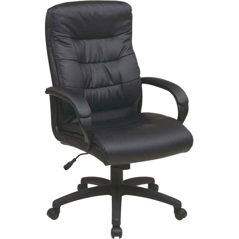 Features:Faux Leather Seat and Back with Built-In Lumbar SupportOne Touch Pneumatic Seat Height AdjustmentLocking Tilt Control with Adjustable Tilt Tension Black Faux Leather Fixed Padded Loop Arms Heavy Duty Nylon Base with Dual Wheel Carpet Casters Fabri