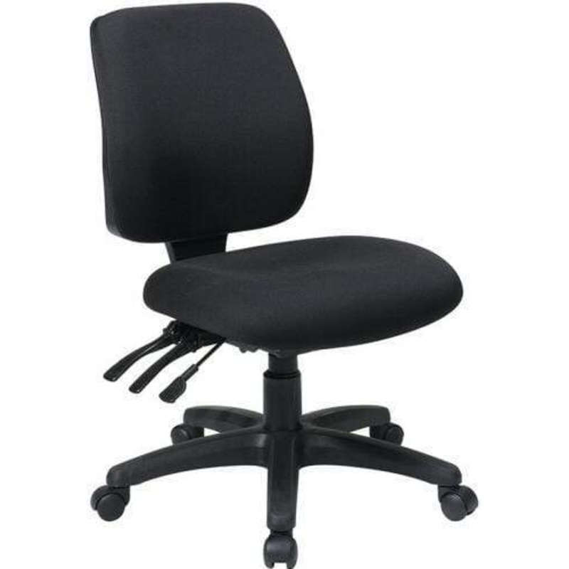 This mid back adjustable office chair from Office Star Products features a dual-function mechanism for back angle and forward tilt adjustments.Features:Thick foam padded seat and backrest cushionsContoured backrest with built-in lumbar supportOne touch pne