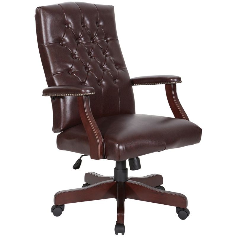 Treat yourself to the quality and comfort of this beautifully crafted traditional executive chair from Office Star. This chair comes in rich Jamestown vinyl to match your traditional office decor. Both the back and seat are thickly padded for your comfort.
