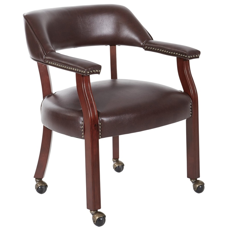 Features:Thick Padded Seat and BackPadded ArmrestJamestown Oxblood VinylRoyal Cherry Finish Wood Legs with CastersOuter Materials: Vinyl/Wood Fabric: Jamestown VinylFinish: Royal CherryDimensions: Overall: 24.5"W x 24.5"D x 30"HSeat Size: 24.25"W x 20.25"D