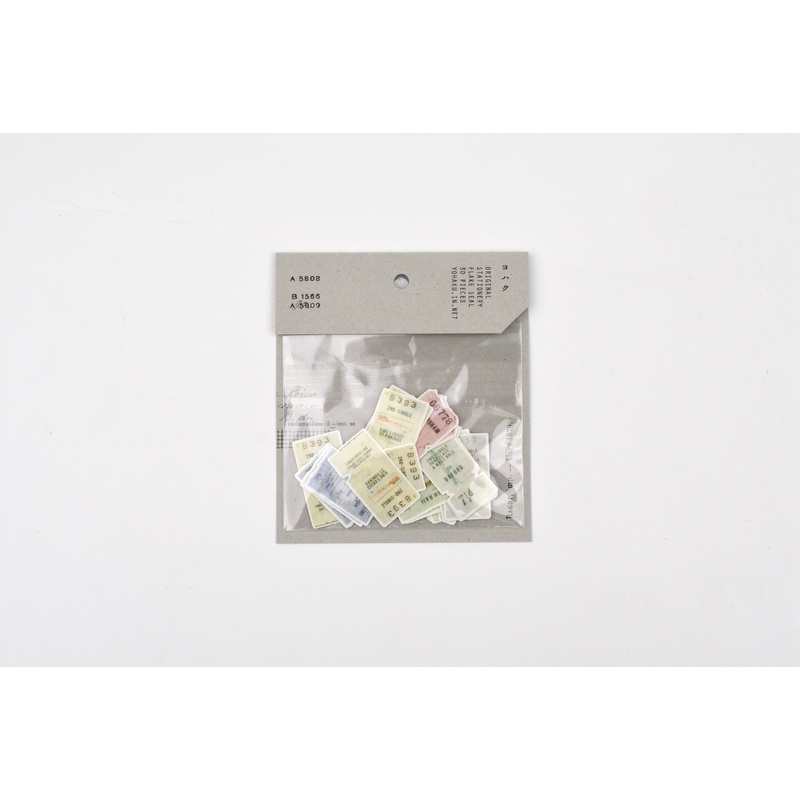 Yohaku Flake Sticker - Ticket"A small, cute ticket sticker with a design Ive always wanted to make. It has a striking presence and feels very practical, adding a nice accent wherever you place it." - by creator Yohaku Product size: 85mm x 97mm x 2mm 6 desi