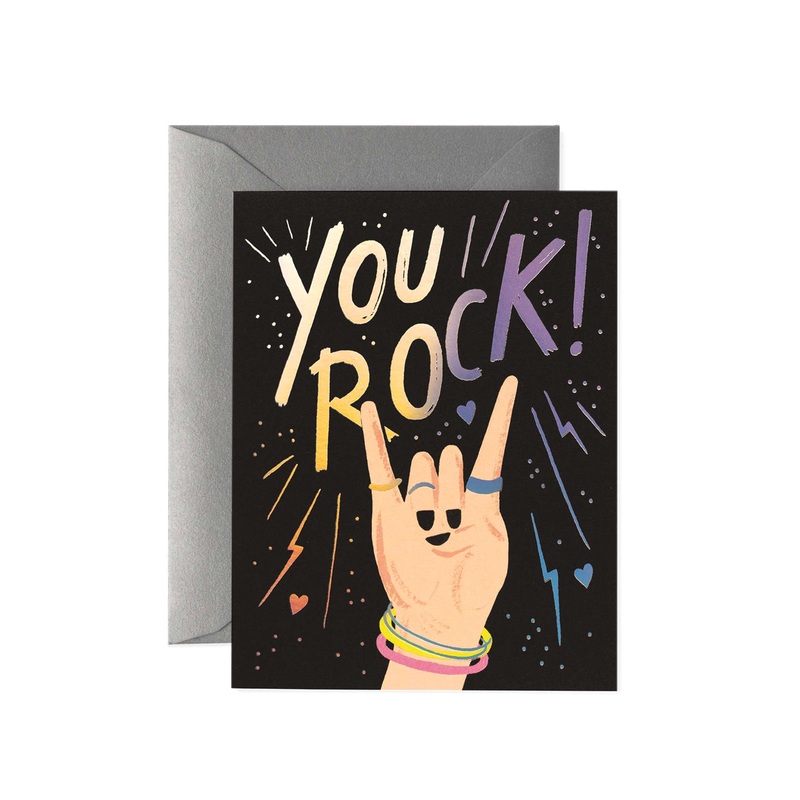 Crank the amps and shout how much that special someone means to you with the dynamic You Rock card from Rifle Paper Co.
