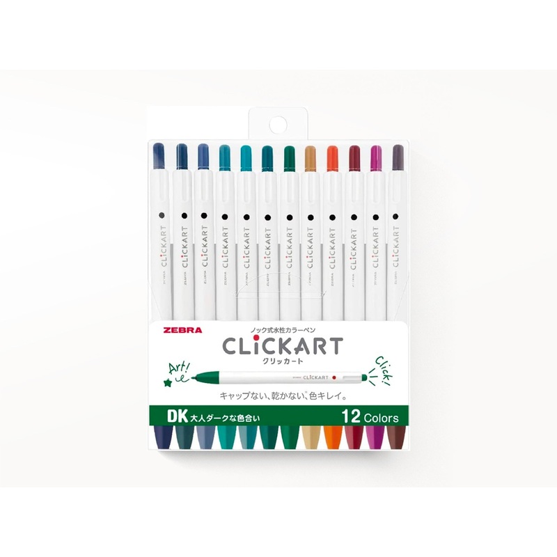 Zebra ClickArt Retractable Marker Pens Set of 12 – Dark