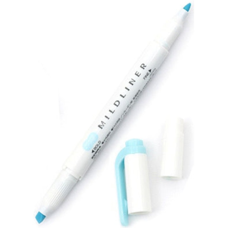 Zebra Mildliner Double Tip Mild Blue HighlighterFeaturing softly coloured ink, the Zebra Mildliner is perfect for the times when you want to highlight something without overwhelming everything else on the page. It features water-based ink and a convenient