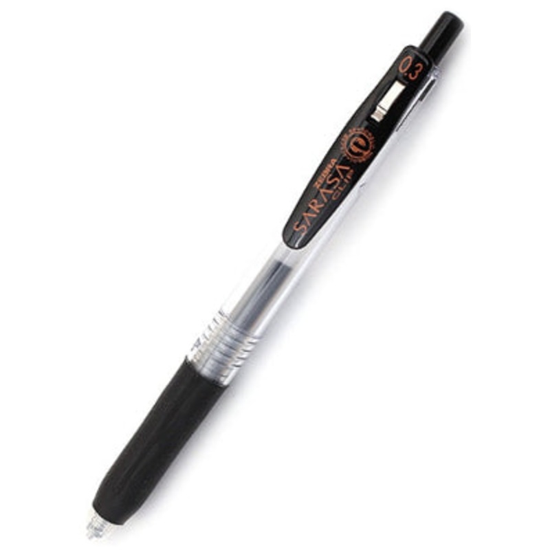 Zebra Sarasa Clip Gel 0.3mm Black Rollerball Pen The Zebra Sarasa Push Clip gel pen is the pinnacle of modern gel pen architecture. A well designed body with a comforable rubber grip, a sturdy retractable 3.0mm tip and an oversized, large spring cllp that