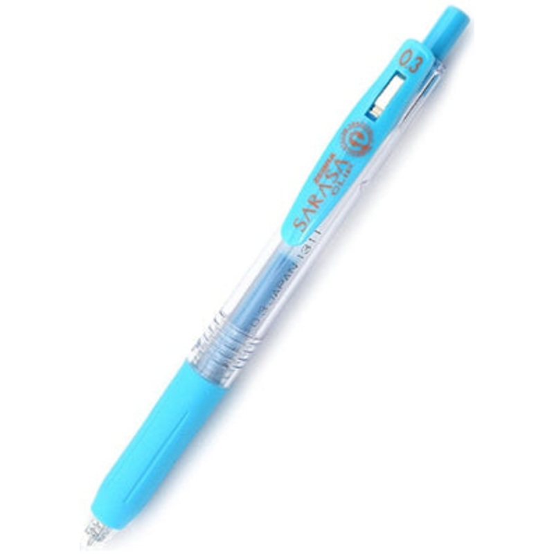 Zebra Sarasa Clip Gel 0.3mm Light Blue Rollerball PenThe Zebra Sarasa Push Clip gel pen is the pinnacle of modern gel pen architecture. A well designed body with a comforable rubber grip, a sturdy retractable 3.0mm tip and an oversized, large spring cllp t