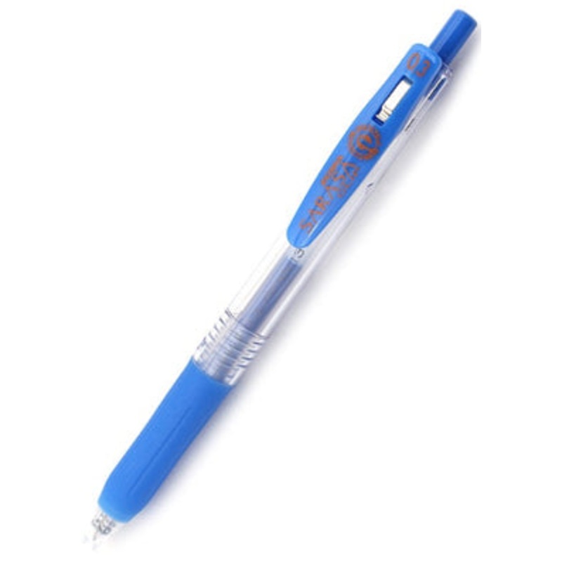 Zebra Sarasa Clip Gel 0.3mm Pale Blue Rollerball PenThe Zebra Sarasa Push Clip gel pen is the pinnacle of modern gel pen architecture. A well designed body with a comforable rubber grip, a sturdy retractable 3.0mm tip and an oversized, large spring cllp th
