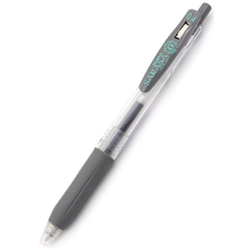 Zebra Sarasa Clip Gel 0.4mm Grey Rollerball PenThe Zebra Sarasa Push Clip gel pen is the pinnacle of modern gel pen architecture. A well designed body with a comforable rubber grip, a sturdy retractable 3.0mm tip and an oversized, large spring cllp that at