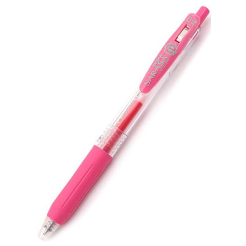 Zebra Sarasa Clip Gel 0.4mm Pink Rollerball PenThe Zebra Sarasa Push Clip gel pen is the pinnacle of modern gel pen architecture. A well designed body with a comforable rubber grip, a sturdy retractable 3.0mm tip and an oversized, large spring cllp that at