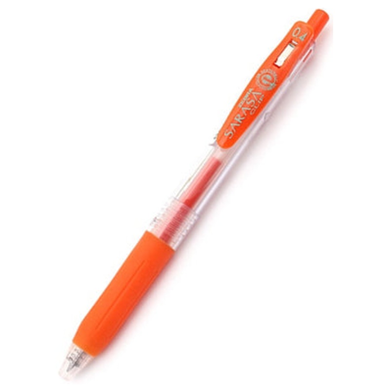 Zebra Sarasa Clip Gel 0.4mm Red Orange Rollerball PenThe Zebra Sarasa Push Clip gel pen is the pinnacle of modern gel pen architecture. A well designed body with a comforable rubber grip, a sturdy retractable 3.0mm tip and an oversized, large spring cllp t