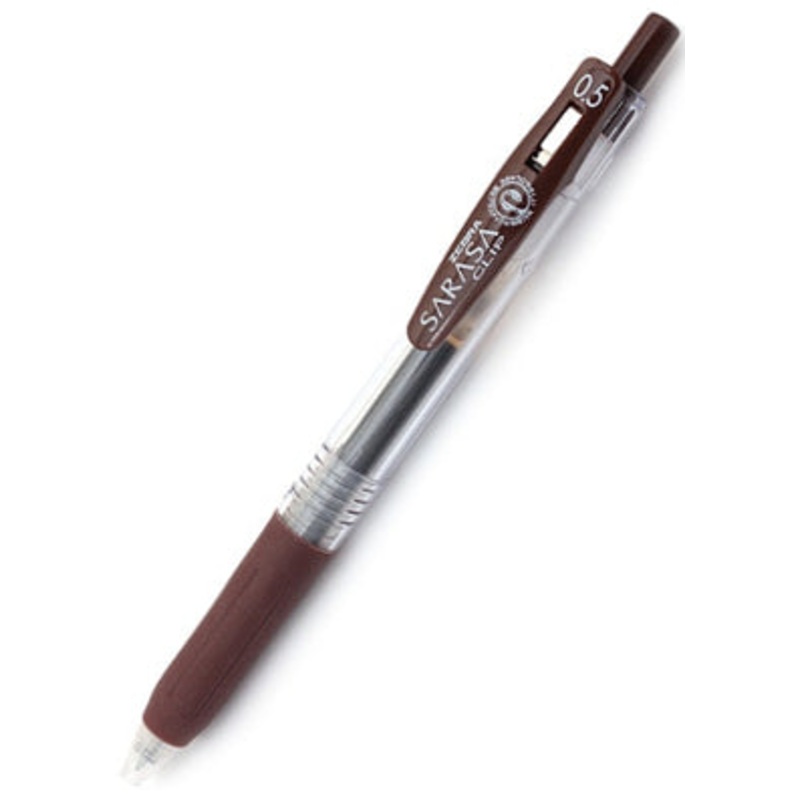 Zebra Sarasa Clip Gel 0.5mm Brown Rollerball PenThe Zebra Sarasa Push Clip gel pen is the pinnacle of modern gel pen architecture. A well designed body with a comforable rubber grip, a sturdy retractable 3.0mm tip and an oversized, large spring cllp that a