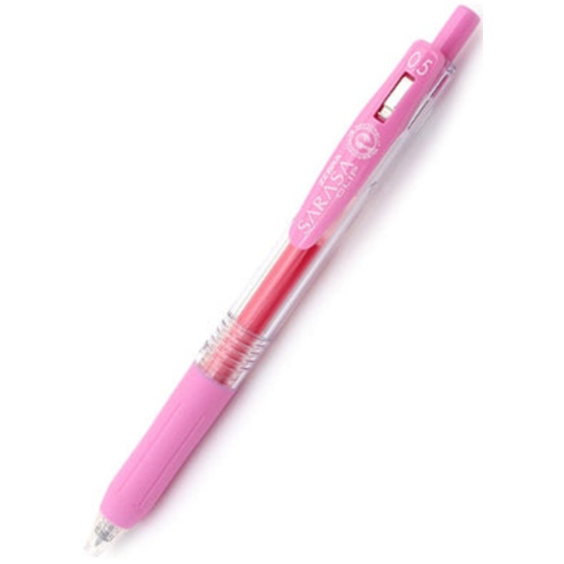Zebra Sarasa Clip Gel 0.5mm Light Pink Rollerball PenThe Zebra Sarasa Push Clip gel pen is the pinnacle of modern gel pen architecture. A well designed body with a comforable rubber grip, a sturdy retractable 3.0mm tip and an oversized, large spring cllp t