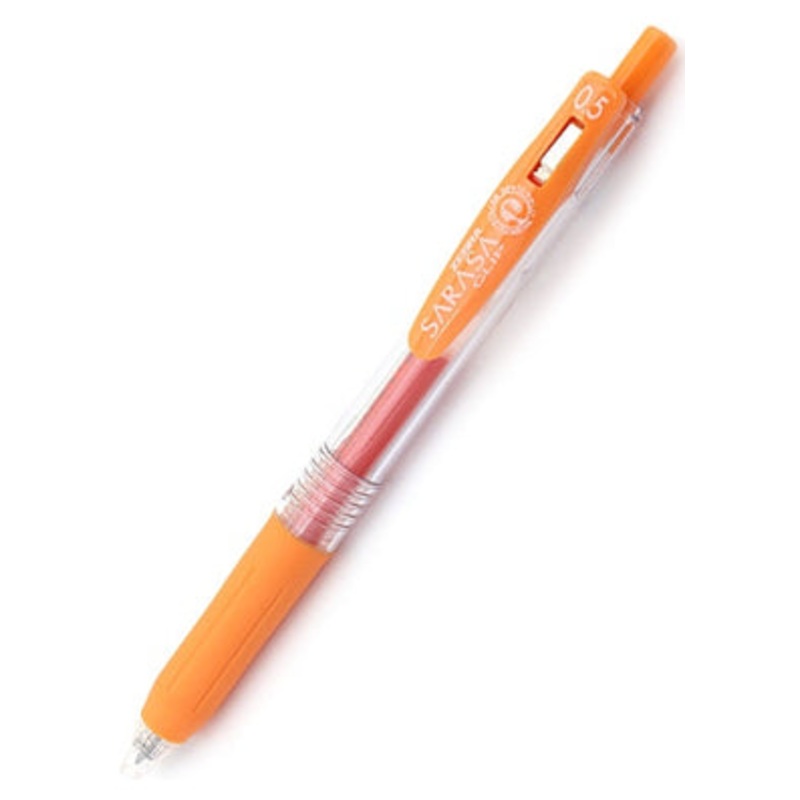 Zebra Sarasa Clip Gel 0.5mm Orange Rollerball PenThe Zebra Sarasa Push Clip gel pen is the pinnacle of modern gel pen architecture. A well designed body with a comforable rubber grip, a sturdy retractable 3.0mm tip and an oversized, large spring cllp that